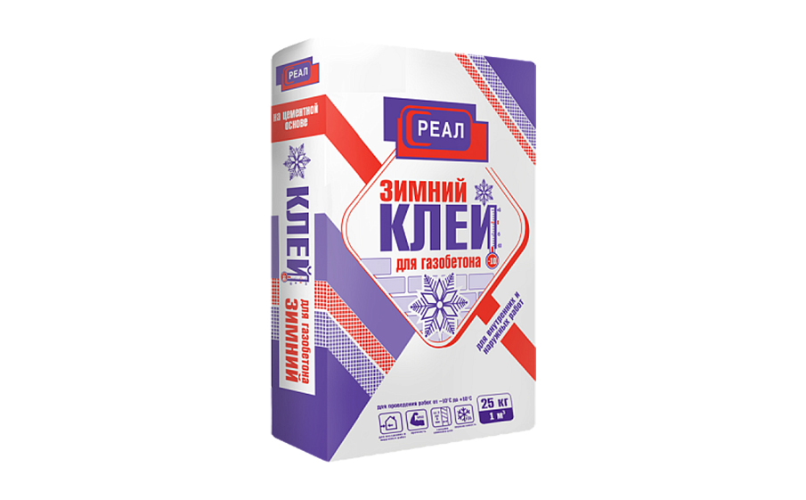 Клей для Газобетонный блока зимний РЕАЛ, 25 кг